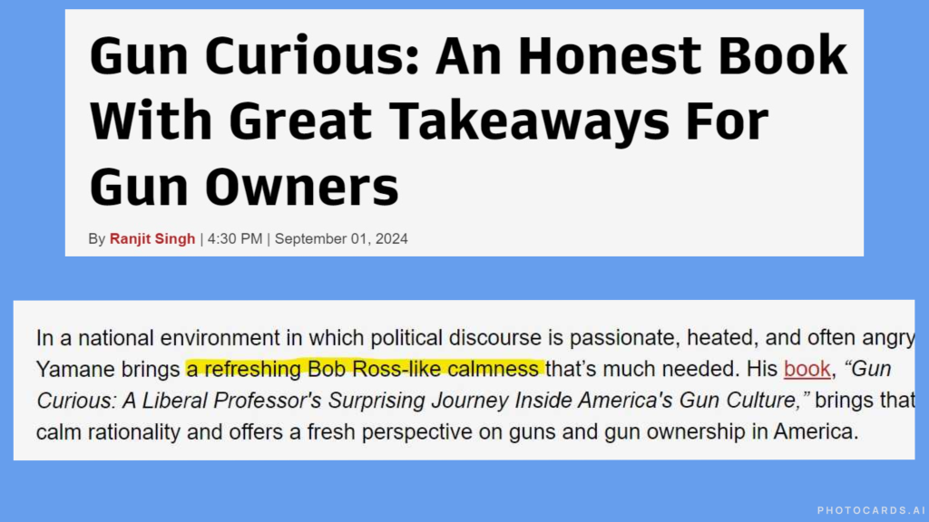 These kinds of comments are the dreams I had for Gun Curious coming true. If you have some thoughts on the book you’d like to share, please send them my way (guncurious2024@gmail.com) or consider leaving a review on Amazon or Goodreads.