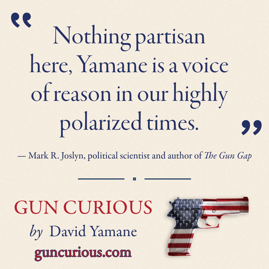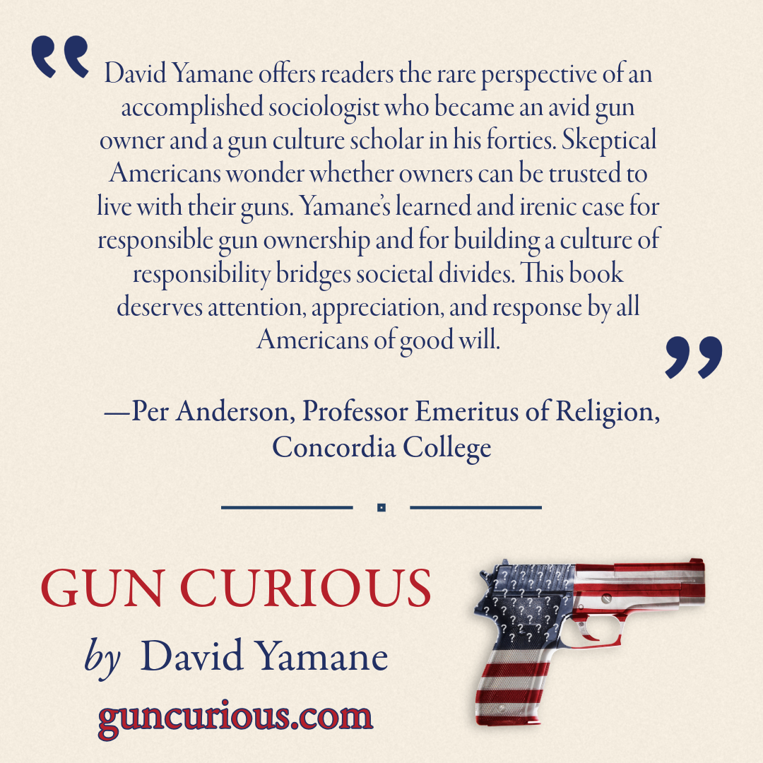 Gun Curious will be published this Saturday, June 1st! Readers of the book will see ideas I have been exploring in various places over the years as I have tried to understand American gun culture.