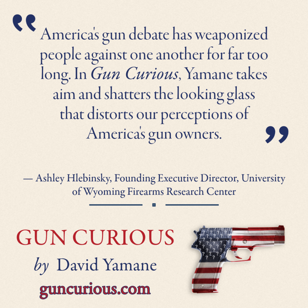 In Gun Curious, I use the story of my surprising 12-year journey inside America’s gun culture to explain why nearly 100 million American civilians own hundreds of millions of firearms. The book illuminates controversial issues like AR-15s concealed carry, the risk of negative outcomes associated with firearms, and what responsible gun ownership looks like in the twenty-first century.
