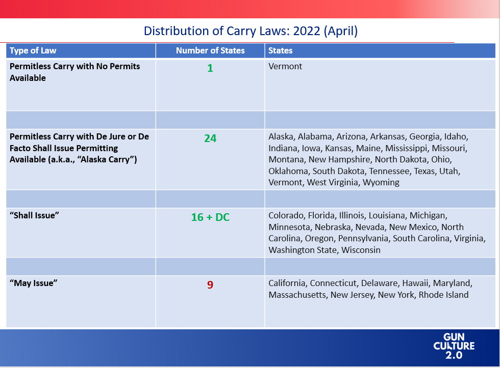 UPDATED APRIL 2022 TO INCLUDE GEORGIA AS A PERMITLESS CARRY STATE.