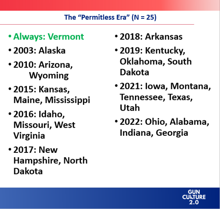 At this point, I have been writing about “The Permitless Carry Era” as part of the overall history of concealed carry laws in the United States for a while.