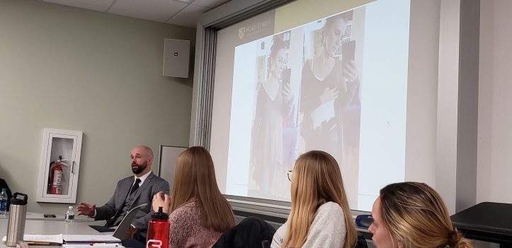 This year, we had the students watch John’s video with Chris Baker for Lucky Gunner on shooting a concealed carry permit test blindfolded (in which John is coincidentally — or perhaps not so coincidentally — wearing his Wake Forest hat). I am looking forward to hearing John and the students talk about the lessons learned from this.