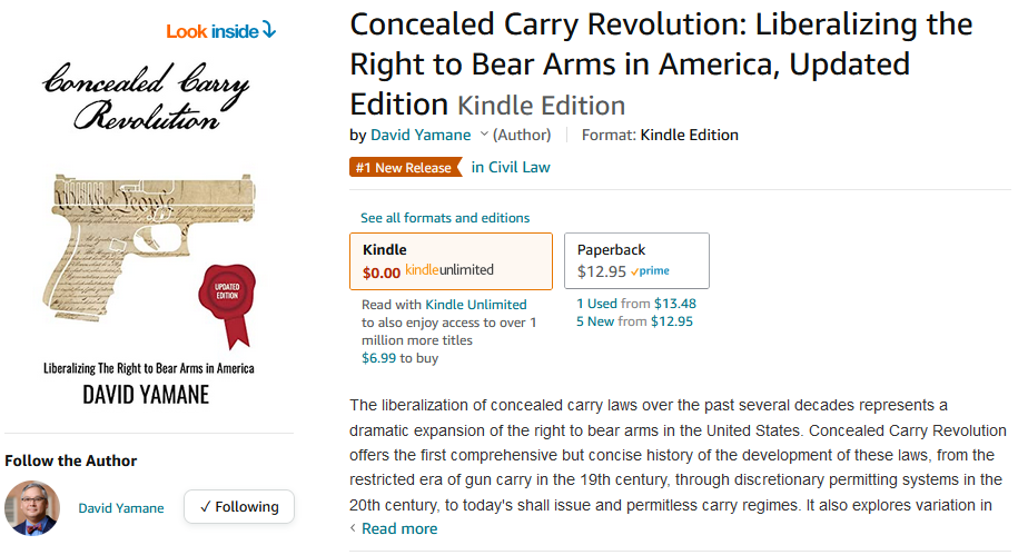 I am very happy to announce that the Updated Edition of my small (92 page) book on the history and current status of concealed carry laws in the United States is now fully available online via Amazon.