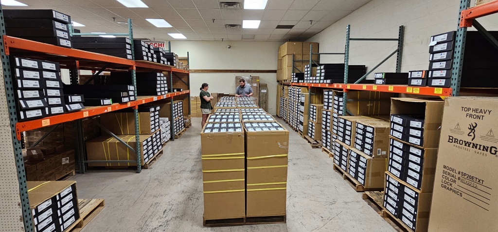 Beyond what is displayed in the Browning shotgun room, the store has a seemingly unlimited supply of Brownings on hand for sale. The picture below shows just some of the boxes of just Browning Citoris. These over/under shotguns come in five different barrel lengths (24, 26, 28, 30, or 32 inches) and five different gauges (12, 16, 20, 28, and .410 bore), so it’s to understand how the stock can multiply. But having literally hundreds in stock is something else.