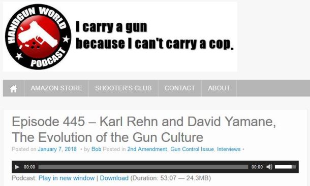 [5] As I noted at the time, I was very excited to talk with Karl Rehn about the evolution of gun culture and gun training on Episode 445 of the Handgun World Podcast (7 January 2018).