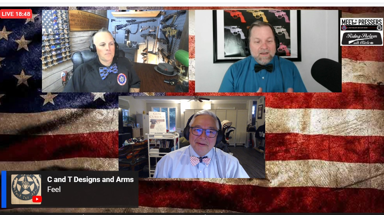 [51] I was very flattered when I signed on for this conversation about Gun Curious with Charlie Cook of Riding Shotgun with Charlie and Matt Mallory of Meet the Pressers and found them nattily attired in bowties (3 July 2024).